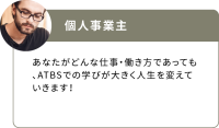 個人事業主あなたがどんな仕事・働き方であっても、ATBSでの学びが大きく人生を変えていきます!