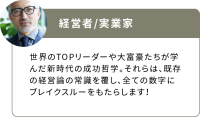経営者/実業家世界のTOPリーダーや大富豪たちが学んだ新時代の成功哲学。それらは、既存の経営論の常識を覆し、全ての数字にブレイクスルーをもたらします!