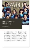 舞台[SAMAEL〜サマエル〜] works 02 中目黒【キンケロシアター】で上演。秘密結社サマエルのメンバー13名が、ある世界的規模の大事件に巻き込まれてゆく。牢獄の中に閉じ込められた13名が、幸福などの哲学的なテーマについて激論を交わす濃厚な会話劇が大きな話題を呼んだ。