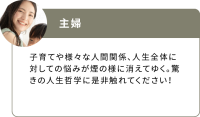 主婦子育てや様々な人間関係、人生全体に対しての悩みが煙の様に消えていく。驚きの人生哲学に是非触れてください!